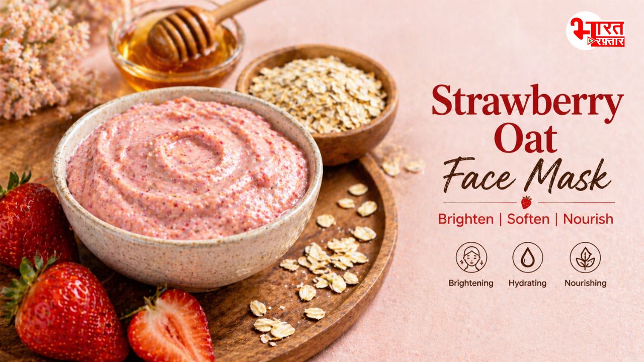 3. स्ट्रॉबेरी ओट्स मास्क (Strawberry Oat Mask)