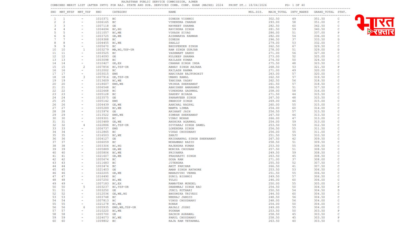RPSC RAS 2024 का रिजल्ट जारी: जयपुर के 3 टॉपर तो 2391 मेरिट लिस्ट में शामिल